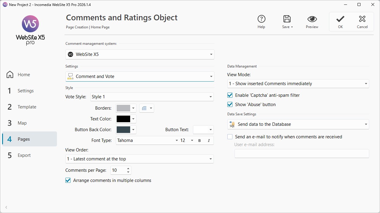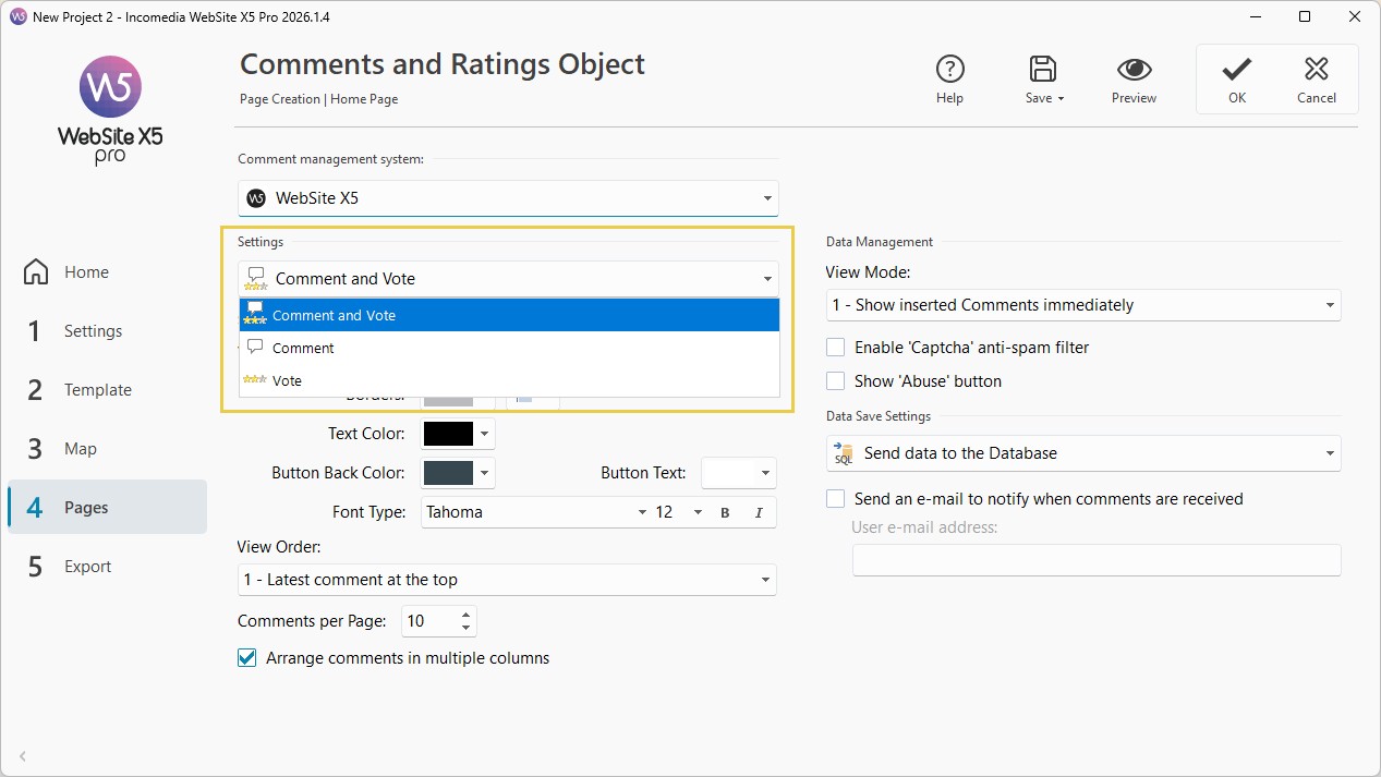Um Kommentare und Bewertungen Ihrer Website-Besucher zu sammeln und zu verwalten, können Sie das interne System von WebSite X5, das Facebook Social Plug-in oder Disqus verwenden.