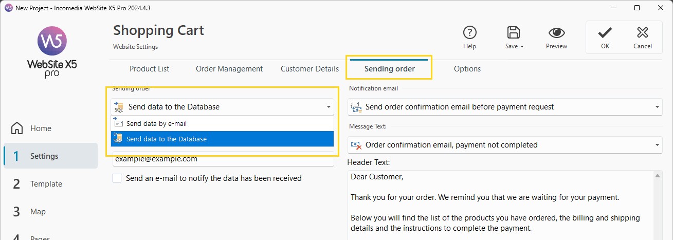 Beim Einrichten eines Onlineshops können Sie definieren, wie Sie die Bestellungen bekommen und speichern möchten. Sie können z. B. beim Empfang einer Bestellung eine E-Mail bekommen oder alle die Bestellungen in einer Online-Datenbank speichern.
