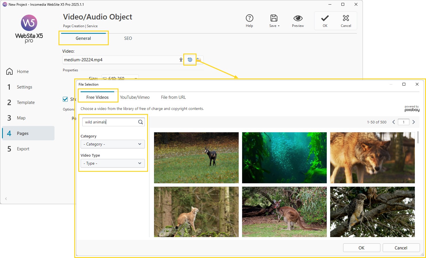 So verwenden Sie die in WebSite X5 integrierte Bibliothek von kostenlosen Videos