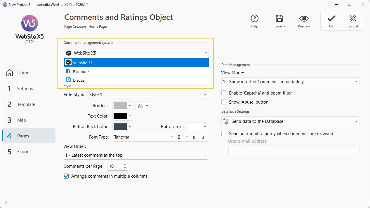 Es ist wichtig zu wissen, dass WebSite X5 mehrere Möglichkeiten zur Verwaltung von Kommentaren und Bewertungen bietet.