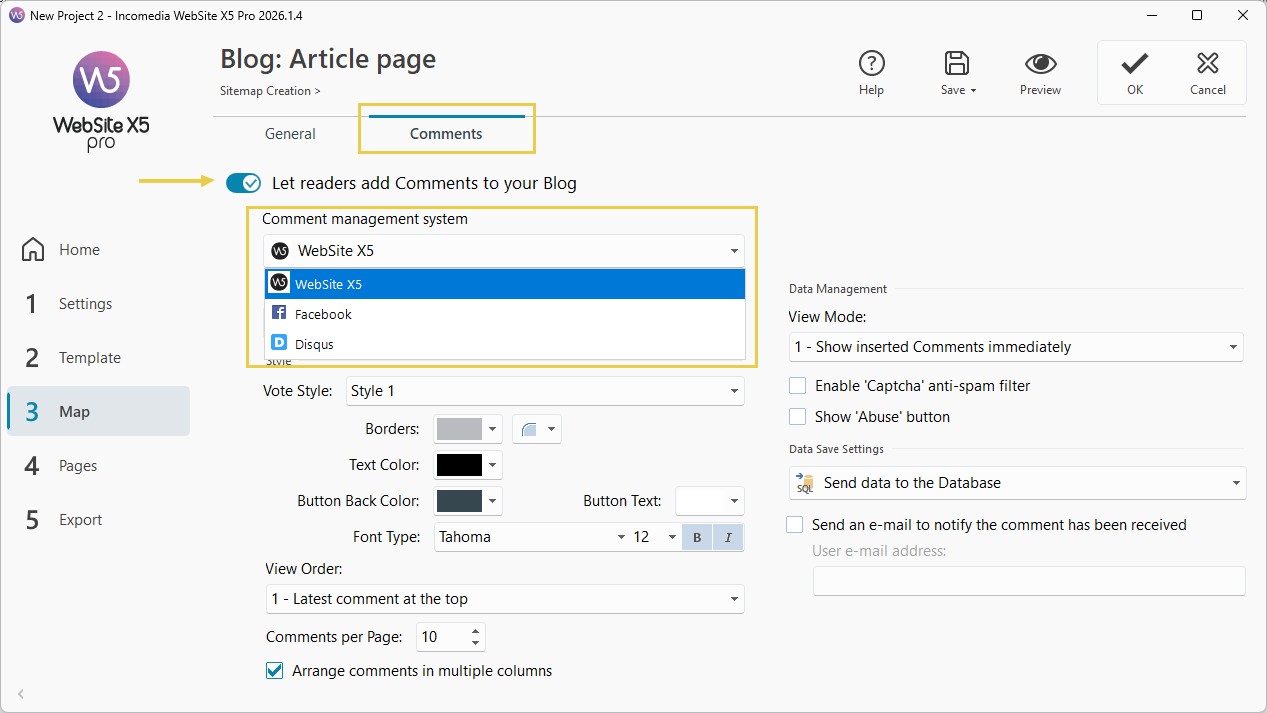 - WebSite X5: it is the WebSite X5 internal system and you can manage the comments you get on the online Control Panel (see: How to set up the internal system of WebSite X5 for comment management).