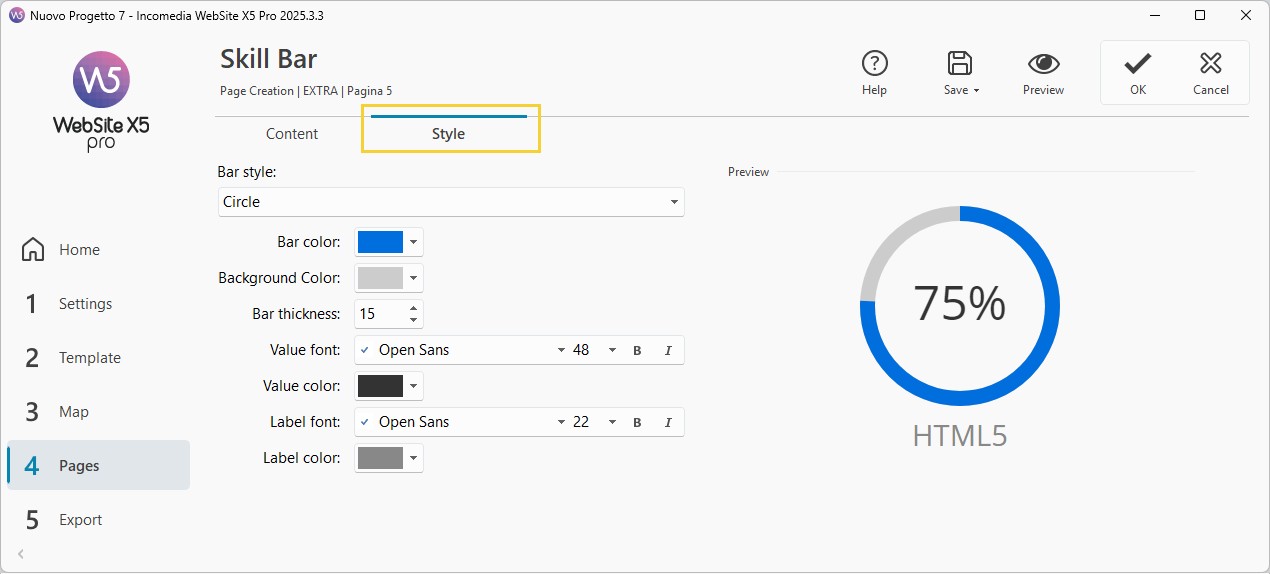 - Still in the Skill Bar window, go to the Style section and choose the Bar Style that best suits your page.