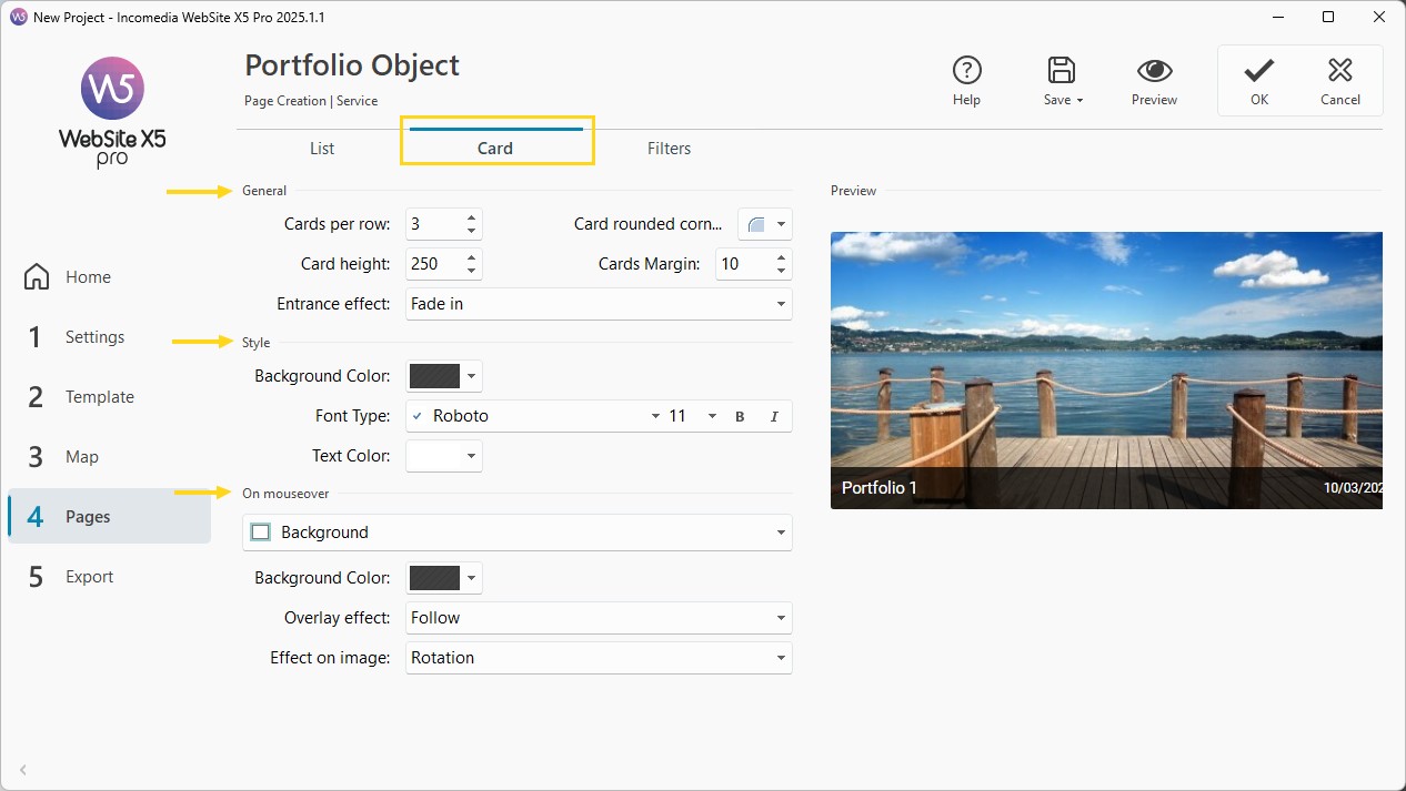 With the Portfolio Object you can easily create your online portfolio. Let's see how WebSite X5 portfolio is organized and how you should proceed to use it on your website.