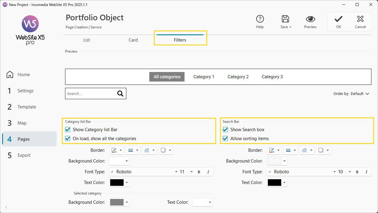 - Once the categories bar is activated, you can customize the style by adjusting the fonts, borders and colors of the different elements.