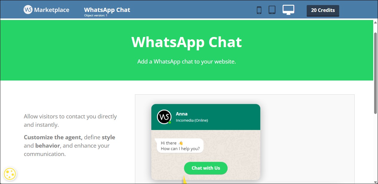 Eager to use it on your website pages? Install the WhatsApp Chat Object now