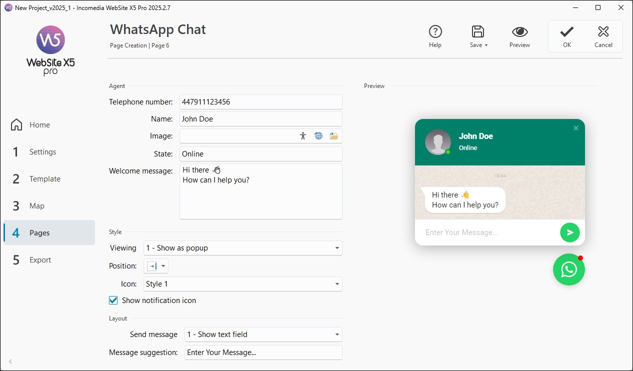 Thanks to the WhatsApp Chat Optional Object, you can activate this feature in a simple, guided way, without writing a single line of code. Just install the object, place it on the page, and define the parameters visually: see how it can be integrated into the Preview page.