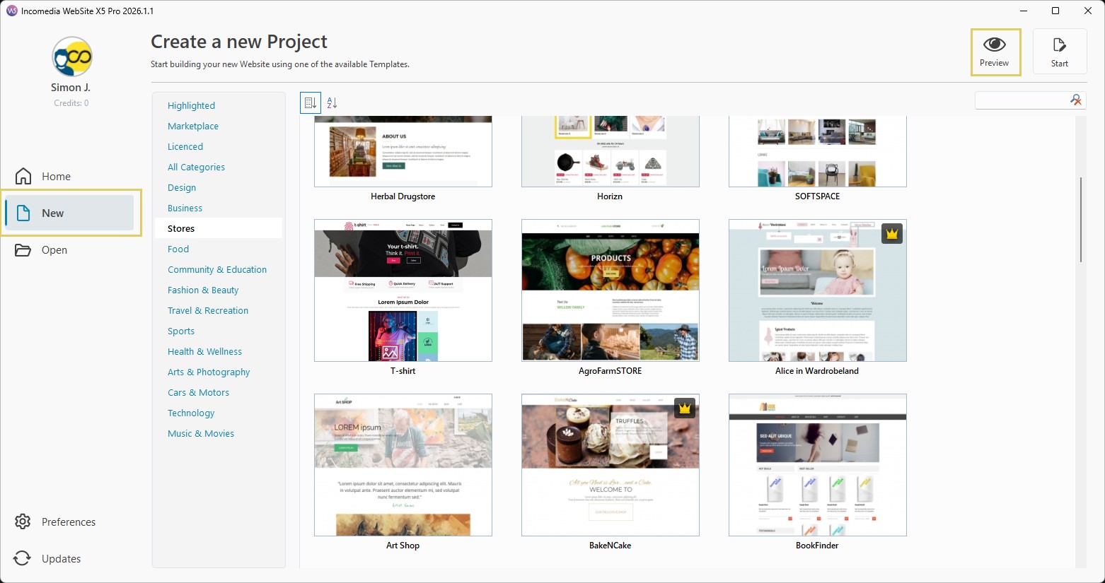 - Avvia WebSite X5. Nella finestra di benvenuto che ti accoglie, clicca sul pulsante Nuovo progetto presente nella pulsantiera a lato.