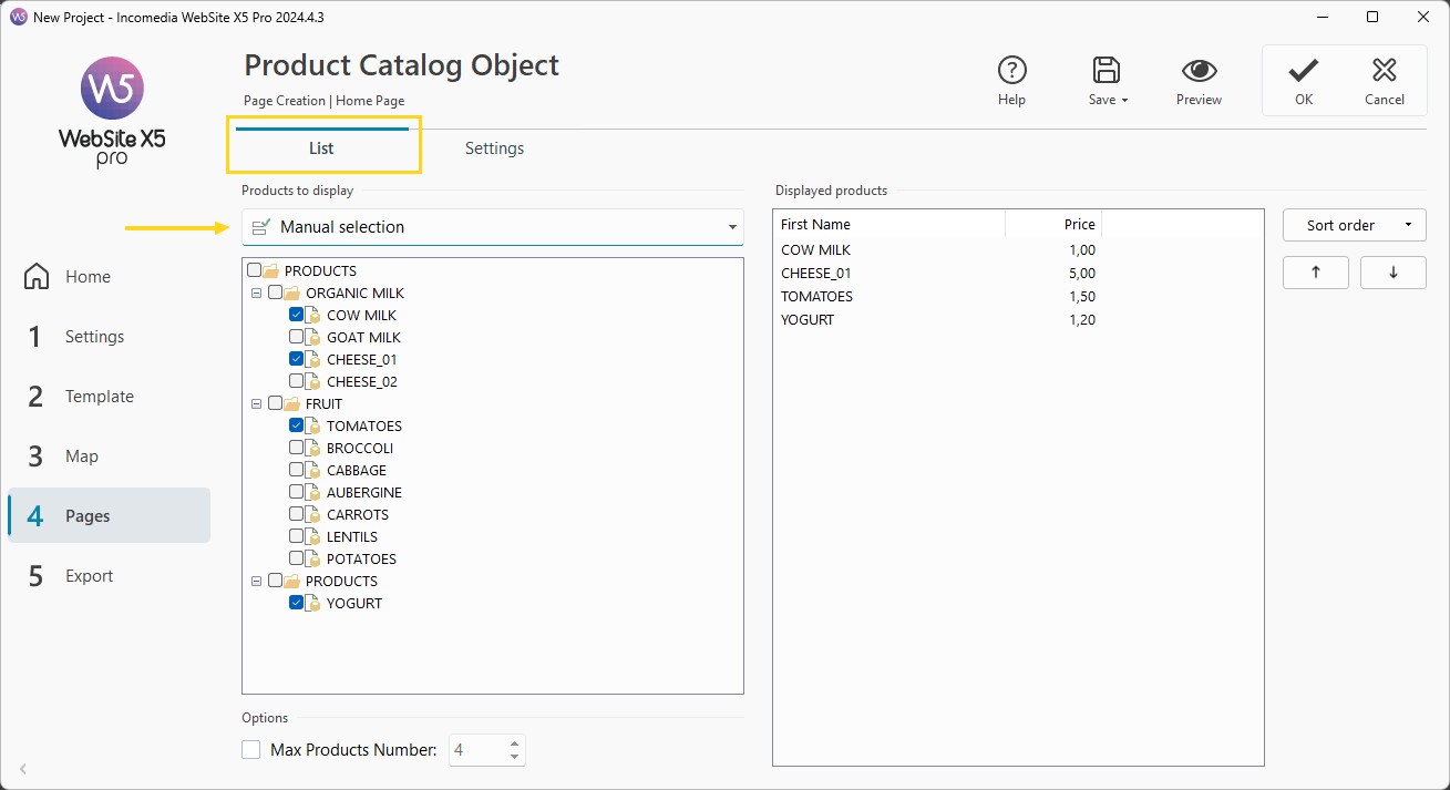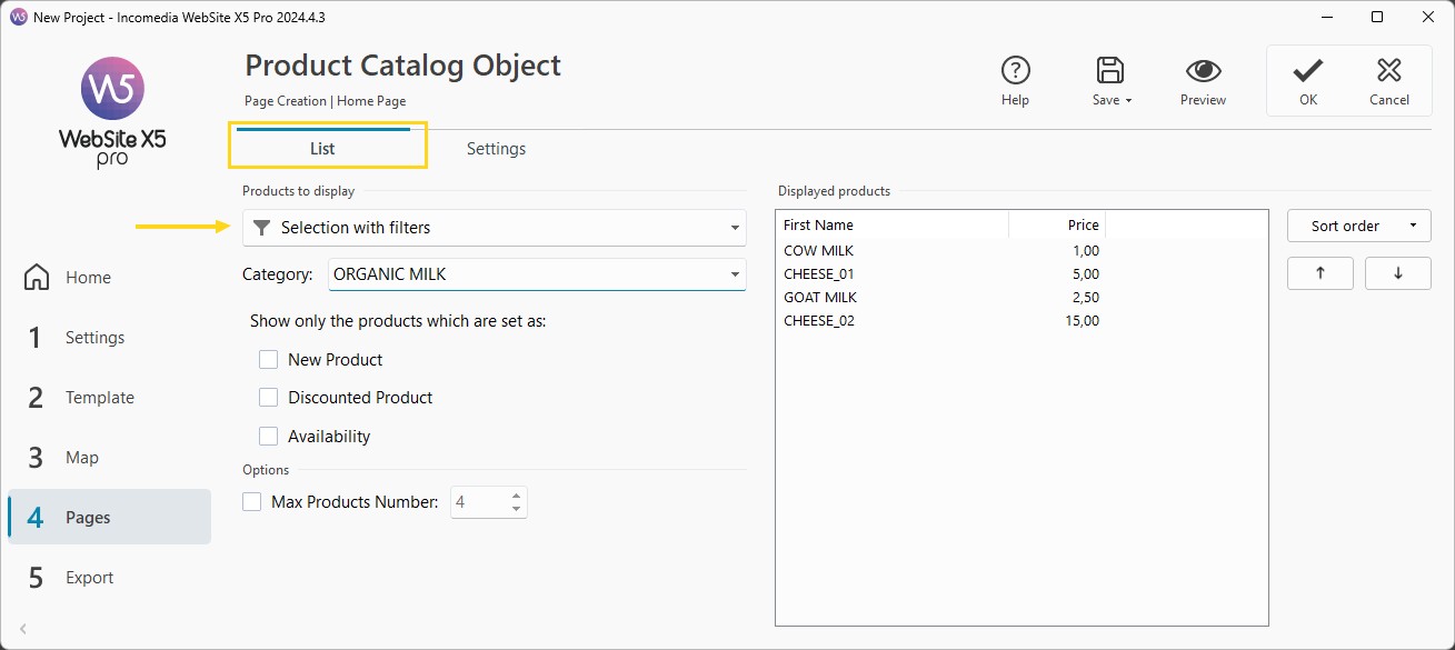 - In secondo luogo devi aver già predisposto al Passo 3 - Mappa la Pagina in cui intendi presentare solo alcuni prodotti selezionati (nel nostro esempio specifico: i formaggi).