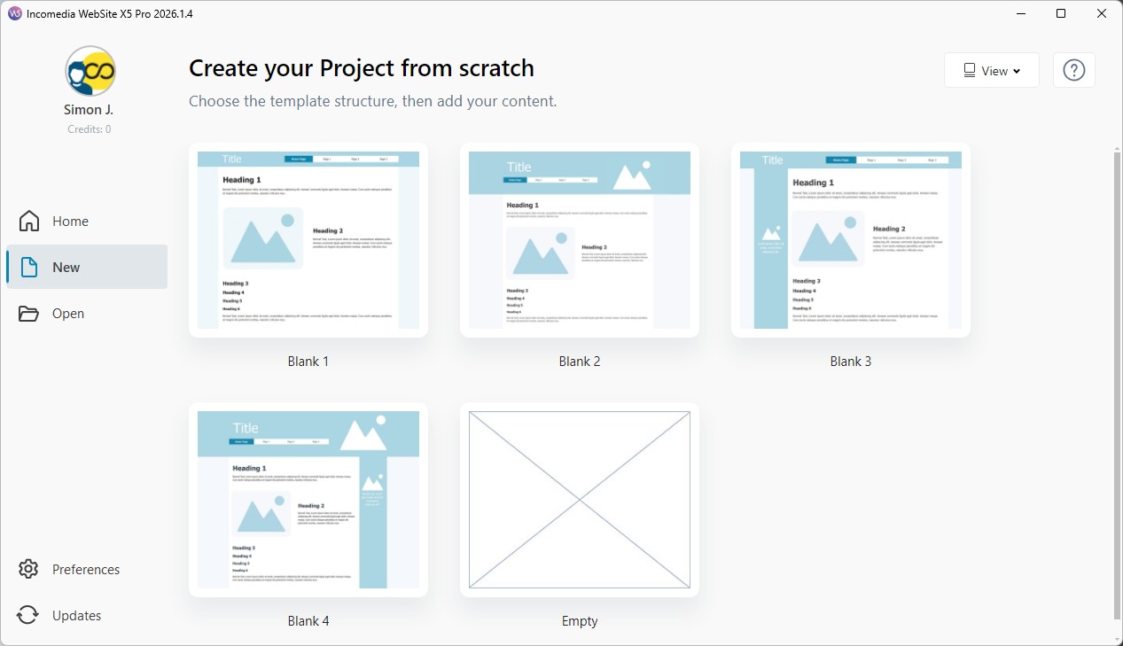 - Avvia WebSite X5 e clicca sul pulsante Nuovo Progetto.